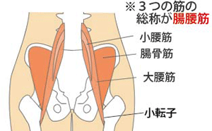 筋性腰痛やぎっくり腰、股関節など脚の関節のケガをかばっていたり、長時間の運転やデスクワーク、スポーツの後のケア不足などがあると、腸腰筋は縮んだまま伸びなくなり固まってしまいます。 これでは、腰が伸びなくなってしまうため、大殿筋というお尻の筋肉に大きな力を入れて股関節を伸ばすことになります。
